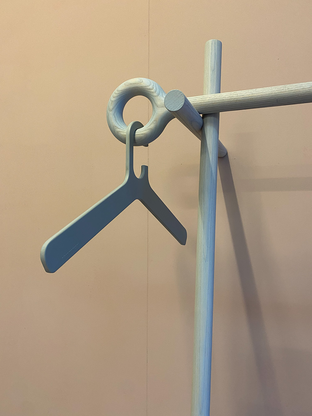 Grado Grey is a plastic clothes hanger with an abstract minimalist shape and rounded ends for the shoulders. Made from sleek matte melamine. Also available in orange and white. Can be purchased individually.