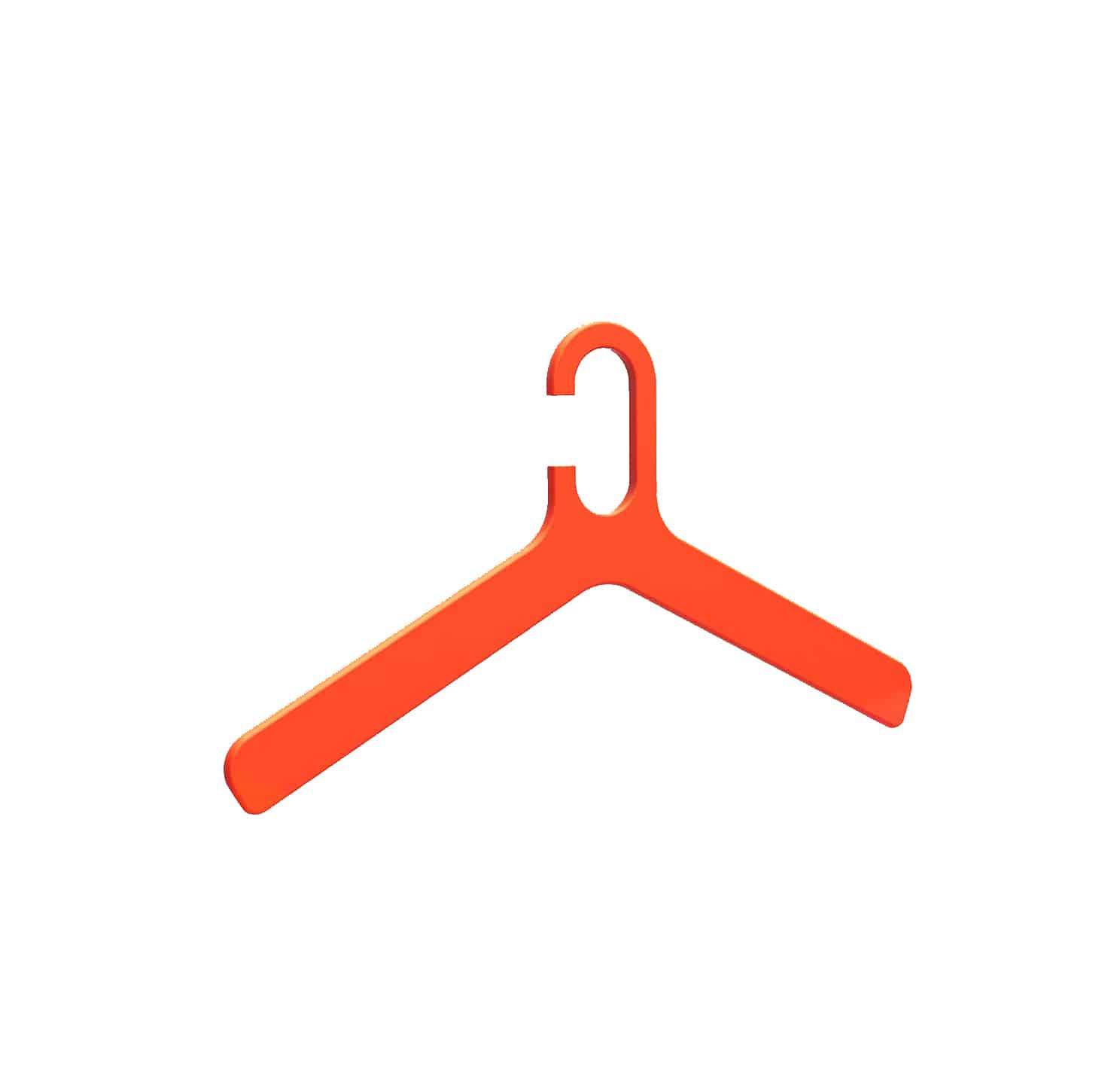 Grado Orange is een kunststof kledinghanger met een abstracte minimale vorm met afgeronde uiteinden voor de schouders. Vervaardigd in strak mat melamine. ook verkrijgbaar in grijs en wit. Kunnen per stuk.
